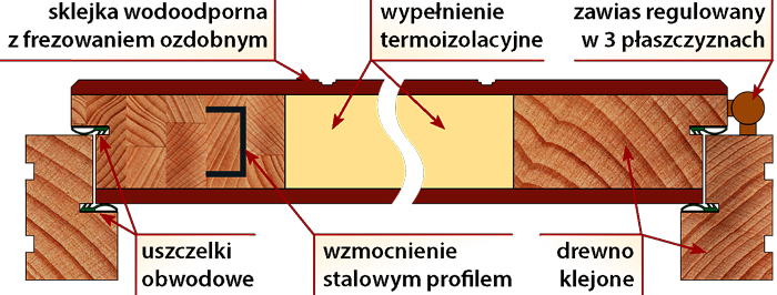 KONSTRUKCJA SKRZYDŁA - specjalna konstrukcja ramy z drewna klejonego, wzmacniana profilem stalowym, z wypełnieniem termoizolacyjnym z obustronnym poszyciem ze sklejki wodoodpornej